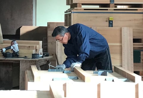 木製梱包材の製作の様子。一流の木工職人の技が身につきます。